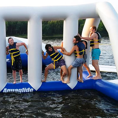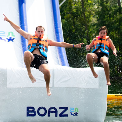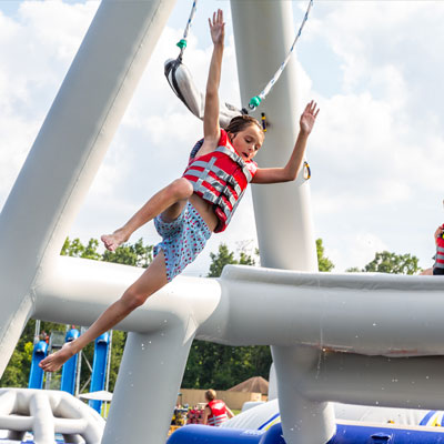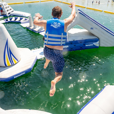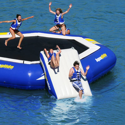Saute sur nos trampolines et enchaîne les saltos au-dessus de l’eau